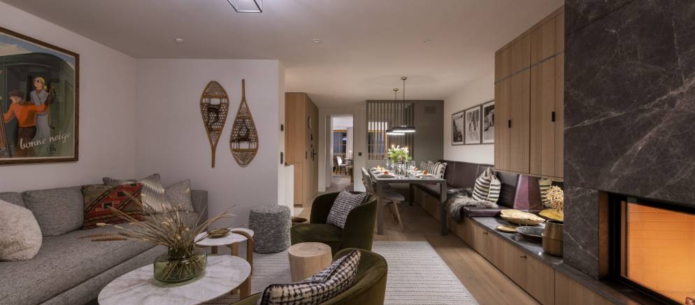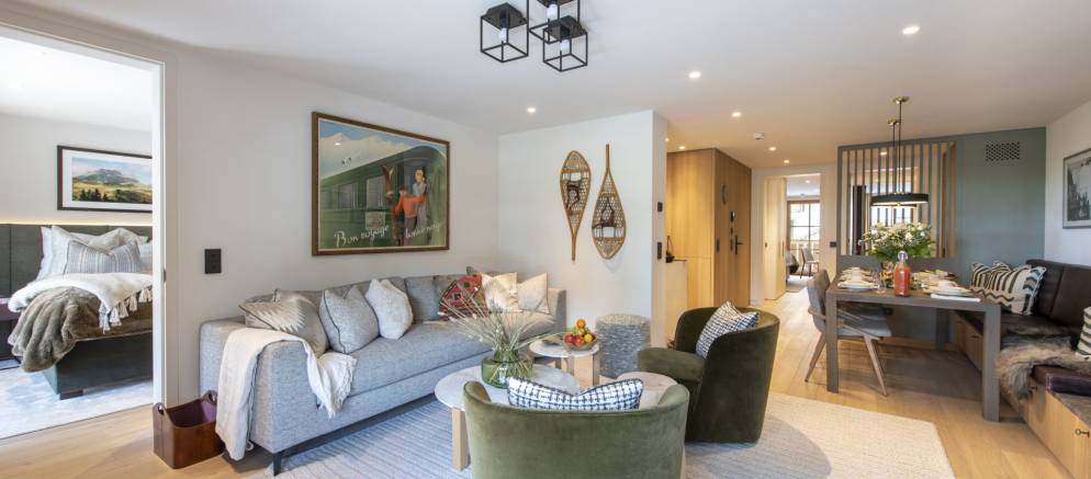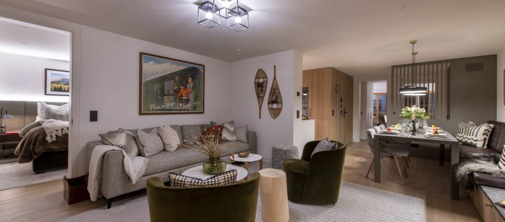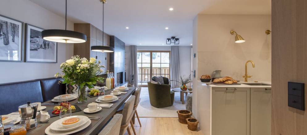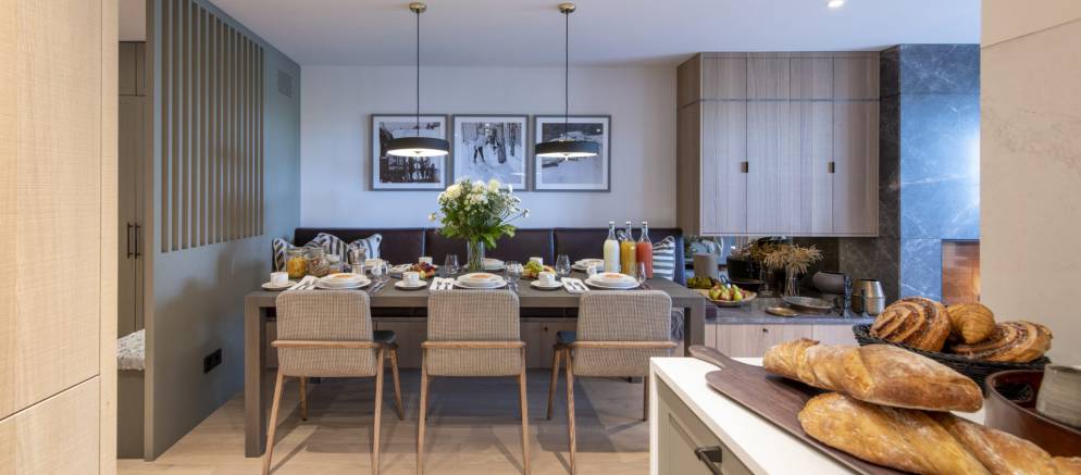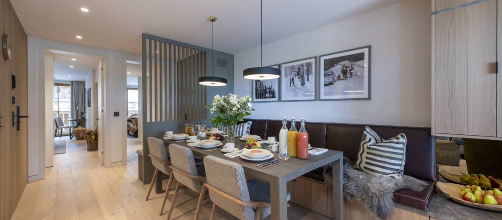 There are three well-appointed double bedrooms, all of which can also be arranged with twin beds. Two of the bedrooms have en-suite shower rooms, and the other both an en-suite bath and shower. All have access to balconies offering either views over the resort or ski slopes.