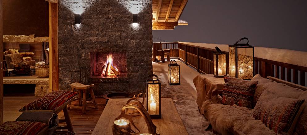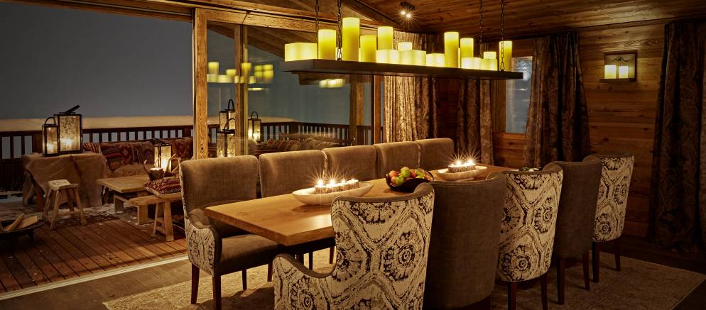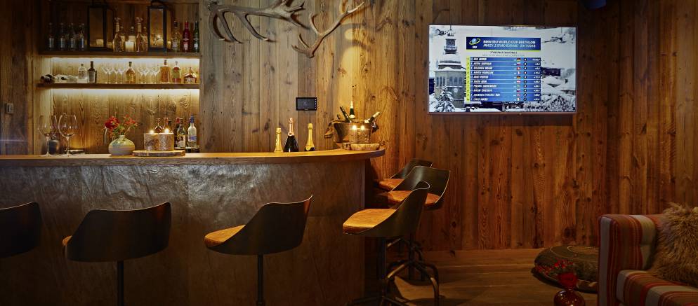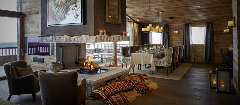 After the rejuvenating effects of your private spa, how about an aperitif around the bar or by the wonderful fireplace. The living area has plenty of comfortably seating to relax on whilst discussing the days skiing adventures, or the terrace with fireplace is a magical spot for a sundowner. In addition, the entertainment/television room is a cosy area to relax and enjoy with friends or family.