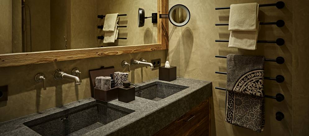 The master bedroom features heated leather flooring and all bedrooms feature beautiful bed linen by Leitner from Austria, to make sure you get an excellent night’s sleep! In the bathrooms, the designer taps from THG Paris and the sturdy stone carved sinks are contrasted with the softest and fluffiest towels.