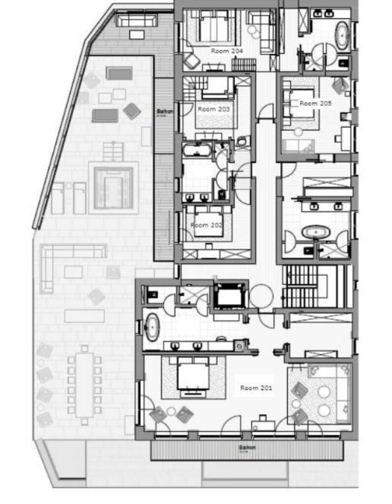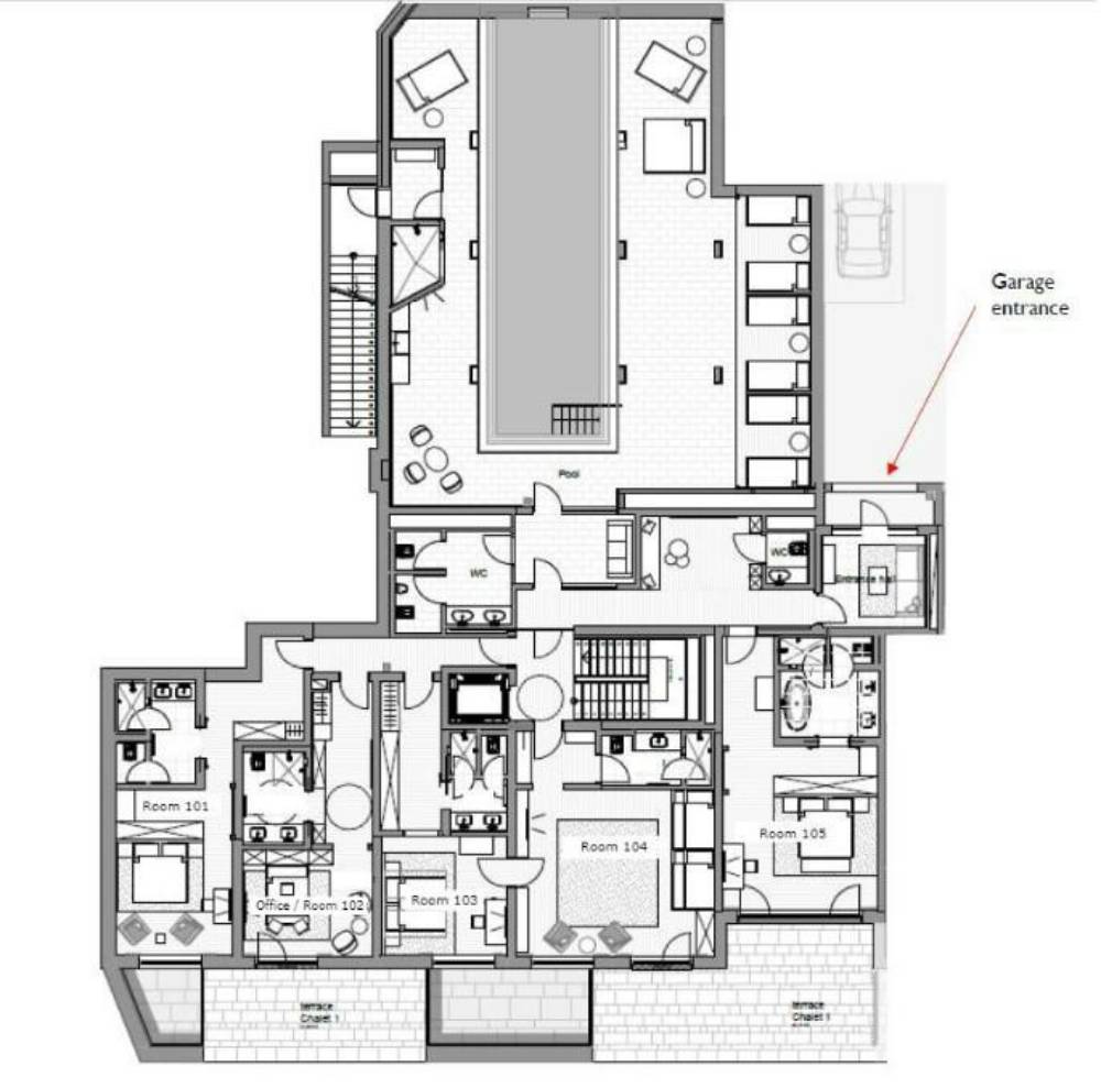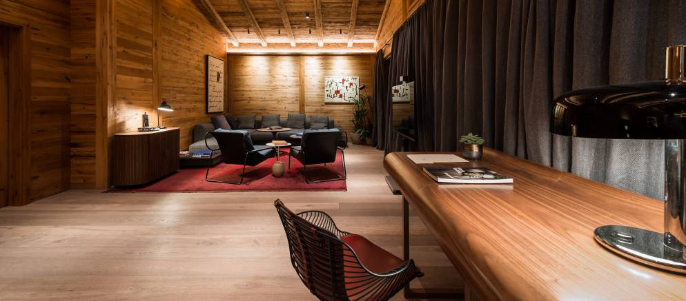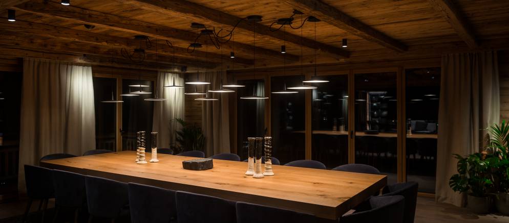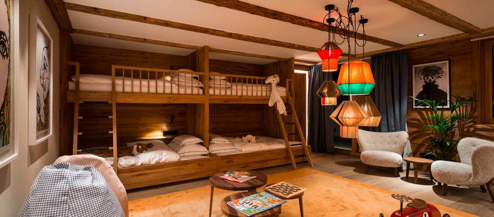 The chalet offers 1,800m2 of sumptuous living space and can accommodate 21 guests across 9 bedrooms. There is a master bedroom, family room, five double bedrooms, a children’s room and one single bedroom. For your private entertainment, and in addition to the spacious living areas the chalet also features a dedicated party room and a private cinema.