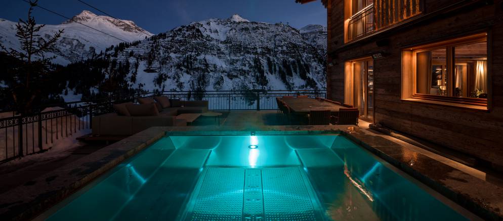 Arula 2’s private spa facilities are amongst the finest of any private chalet in the Alps. Outside you can drink in the breathtaking views from the spacious terraces and heated outdoor Jacuzzi. Inside the spacious spa area features a large swimming pool, sauna, steam bath, infrared cabin, treatment massage room, relaxation area and vital bar.