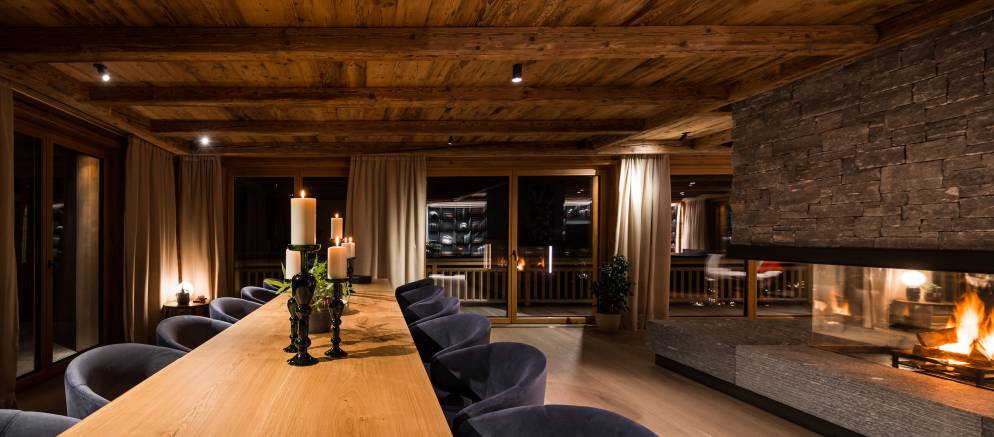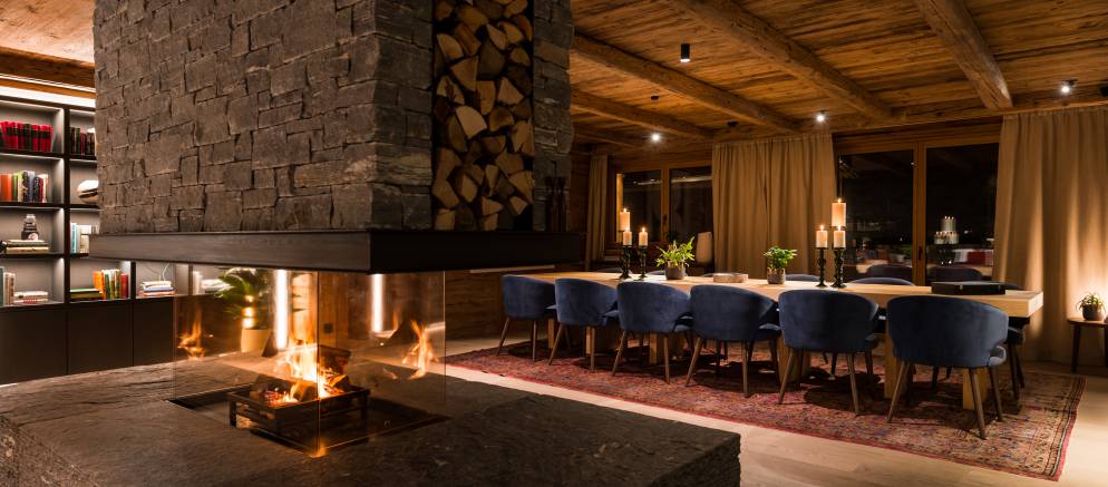 The chalet offers 800m2 of refined living space and can accommodate 8 guests in 4 bedrooms. There are 2 master suites as well as a further 2 double bedrooms, all with en-suite bathrooms. For your private entertainment, and in addition the spacious living areas the chalet also features a dedicated party room and a private cinema.