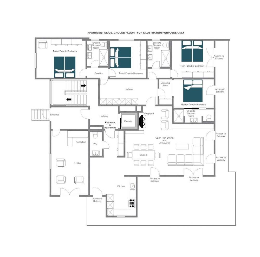 Nidus Apartment 2 is a refined apartment found inside the prestigious Nidus building in the wonderful Alpine ski resort of Lech. This brand-new apartment is sleek and contemporary whist honouring its Alpine location. Neutral colours and state of the art lighting pair with timeless traditional woods and sumptuous fabrics. A sophisticated space, the apartment sleeps up to eight people in four bedrooms.