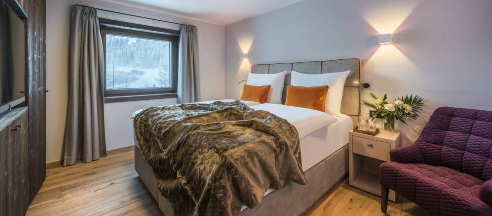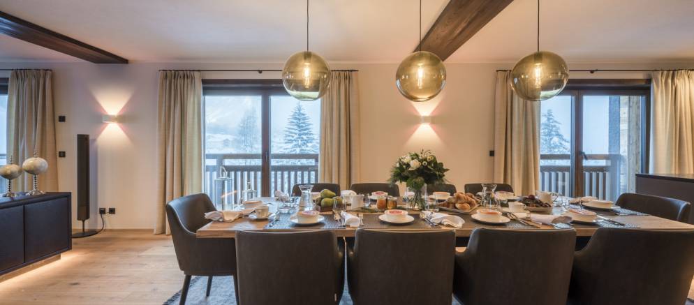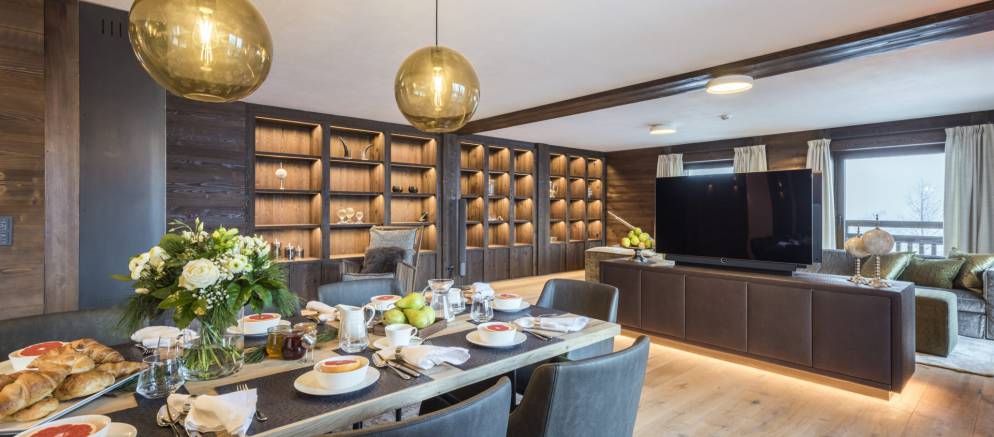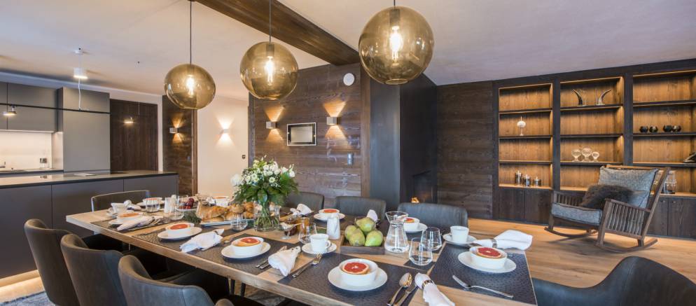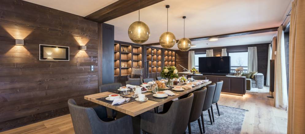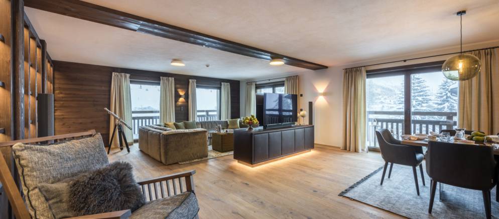 Every window in the living area frames beautiful views of Lech. Perfect for watching the sunset over the mountains and whiling away winter evenings with friends or family.