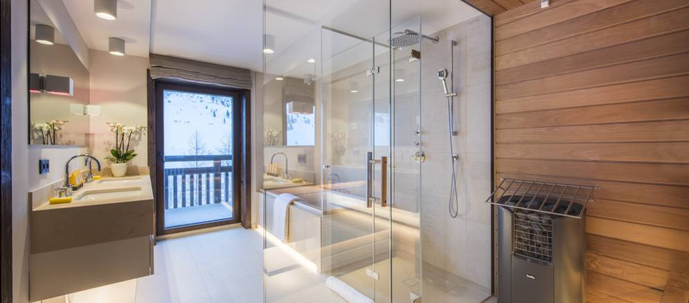 Check the snow conditions from the comfort of the master suite which overlooks the stunning snow topped mountains and has access to the south west facing terrace. The master also impresses with an en-suite bathroom, separate shower and private sauna.