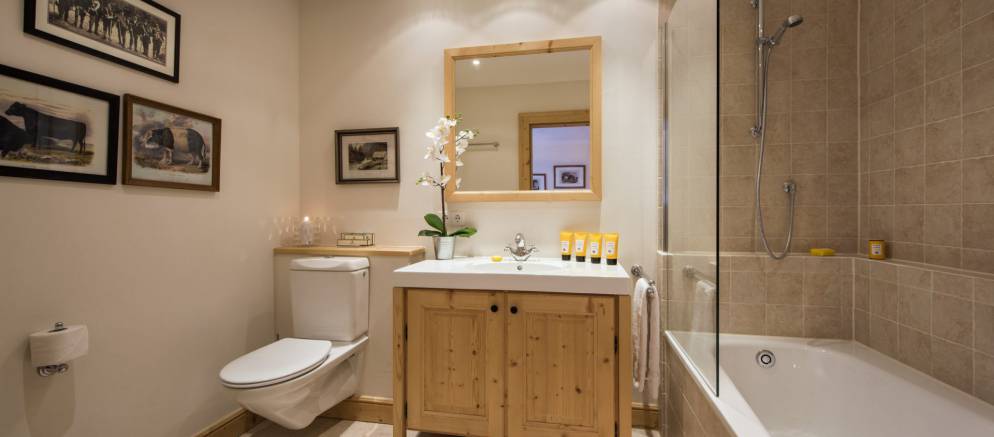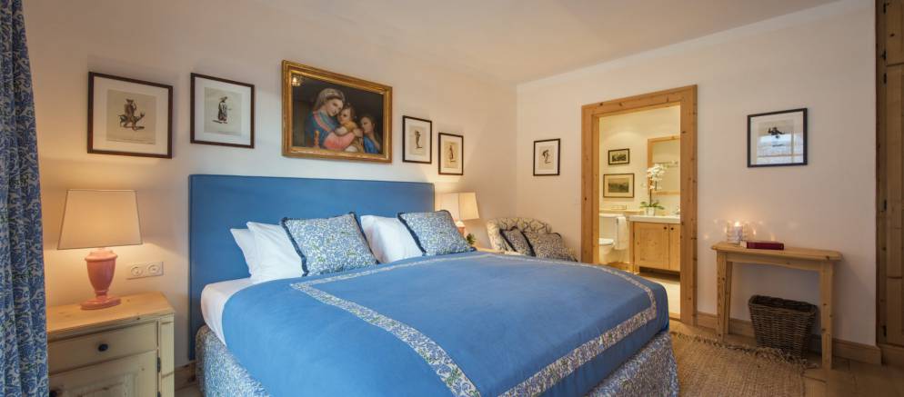 The master double bedroom has an en-suite bathroom and direct access to the terrace with views over the piste. The apartment has two further bedrooms, both with en-suite bathrooms, which can either be configured as double or twin bedrooms, with one of these bedrooms equipped with a TV and DVD player.