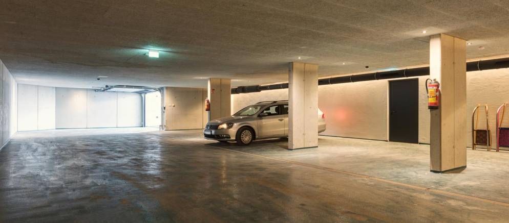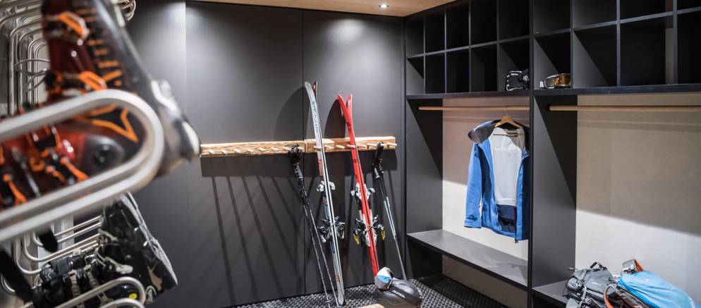 In the basement of the chalet there is garage car parking available for those driving to resort, as well as a shared wellness area with sauna and relaxation area, along with a ski room. The elevator provides access from the basement level to all three apartments.