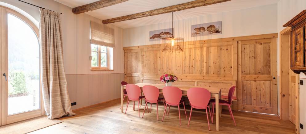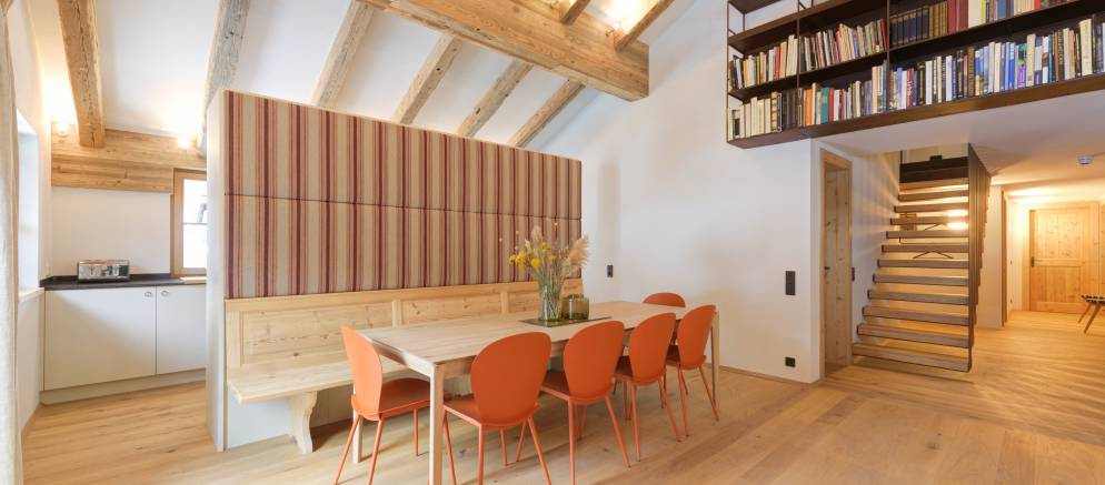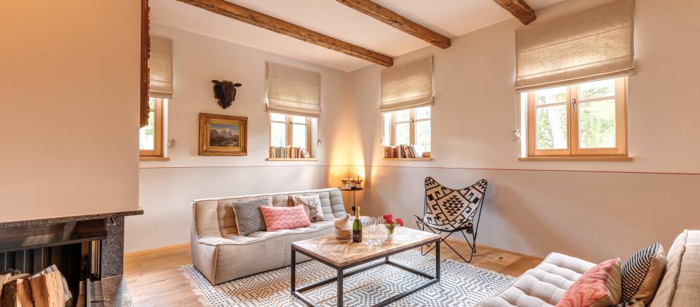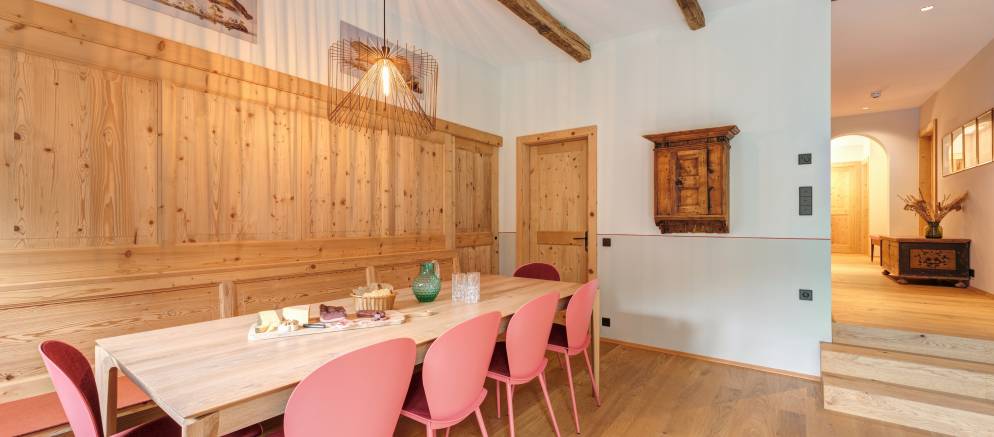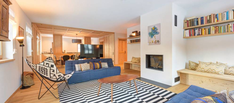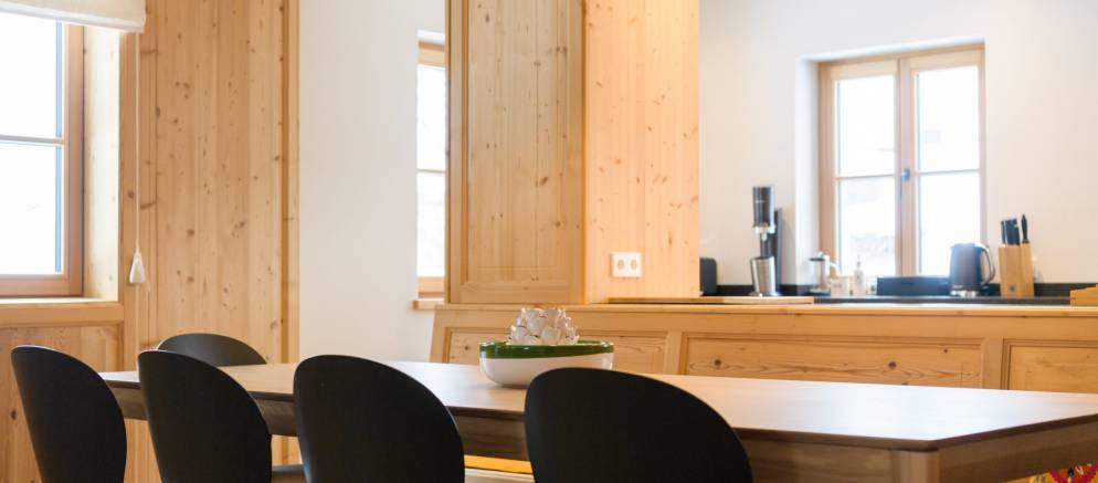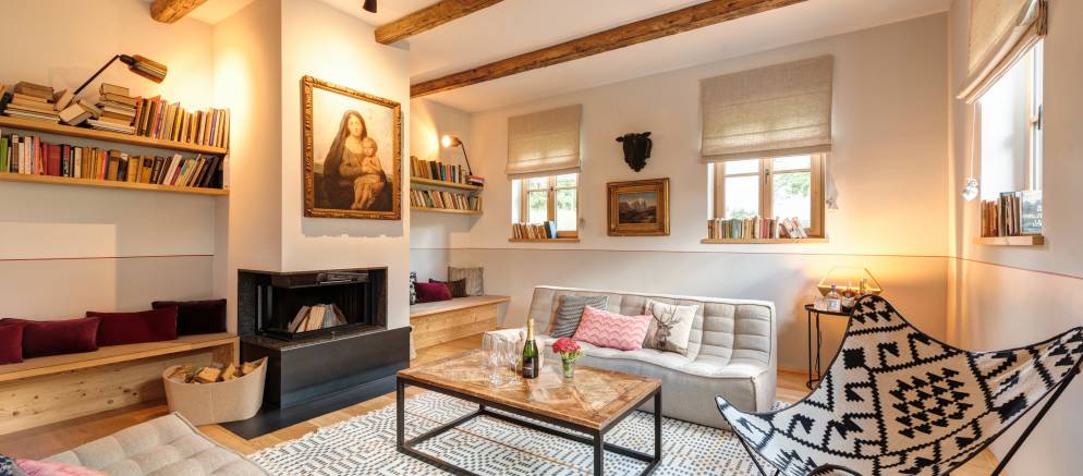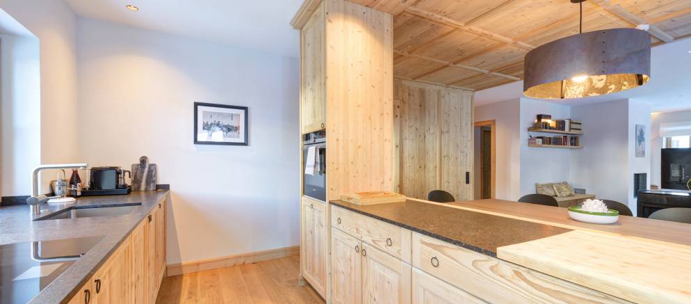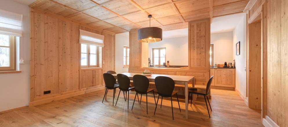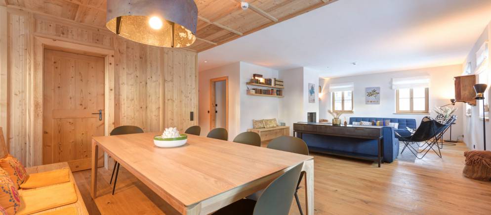 The chalet is made up of three private apartments which in total sleep up to 32 guests. Each apartment has its own entrance, along with a large living and dining area and a fully equipped kitchen. Apartments 1 & 2 also have a fireplace.