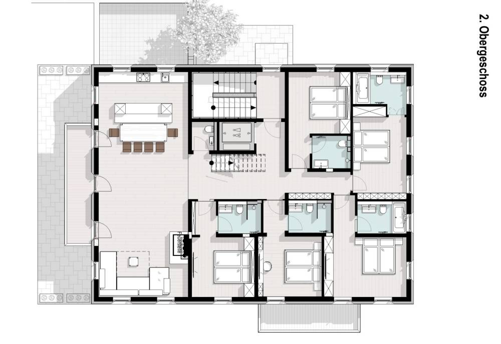 3 x Double or twin bed with en-suite bathroom.