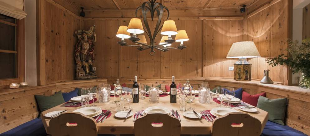 Completed in 2010, the chalet has been built to the highest standards with extensive use of old woods and natural stones. The property has an original 18th Century Tyrolean ‘Stube’ and beautiful wooden furniture, floors, and ceilings. In addition, the dining area is adorned with an authentic Renaissance painted ceiling.