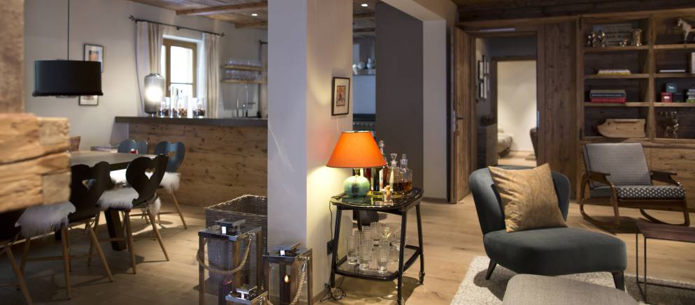 This self-catered chalet sleeps 12 adults and up to 4 children with 6 beautiful bedroom suites that offer a real mountain retreat each with their own en-suite bathrooms and some have a study or drawing room. One room has space to convert into 2 children’s beds, making it into a family suite. There is also one extra bedroom that is perfect for a nanny or additional member of staff.