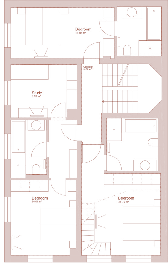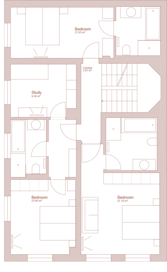 Double or twin bed with en-suite shower room. Ideal as nanny or staff room.