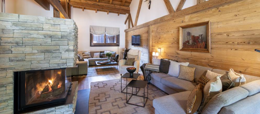 This is a desirable property for those looking after an authentic interior with plenty of lovely rustic wood and a large fireplace for cosy nights in. Outside the entrance there is a covered, shared terrace with outdoor sofas and open fireplace. Stepping inside and there is a cloakroom / boot room, as well as the first two double/twin bedrooms, one with an en-suite bathroom the other an en-suite shower room.