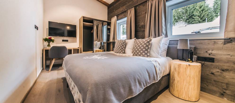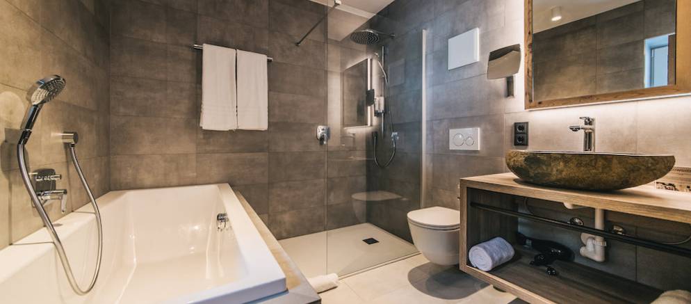 The chalet has five en-suite bedrooms with the master bedroom sitting off the main living room allowing you lots of space and privacy in your own private sanctuary equipped with a huge en-suite with bathtub. Downstairs there are 4 well equipped en-suite bedrooms. The rooming offers plenty of flexibility for an extended family gathering or group of friends looking for a luxurious catered ski chalet experience in Austria.