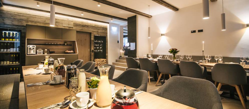The Lodge @ 47 combines Chalet 47 and Chalet Frieda to create the largest boutique chalet in St Anton. Sleeping up to 34 guests in 17 beautiful en-suite bedrooms, the dining room can comfortably seat 34 people for group dining, parties, celebrations or corporate meetings and presentations. There is even your own private spa in which to unwind after a day’s skiing or business meetings.