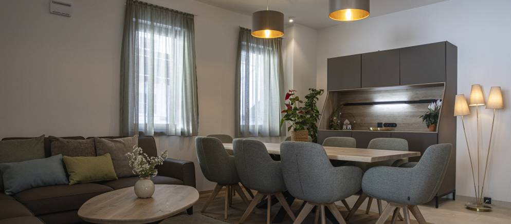 Once back from the ski slopes everyone will surely head to the outdoor sauna and fire pit seating area on the ground floor terrace. Here you can unwind, chat about your day’s adventures before heading inside for a delicious evening dinner party.