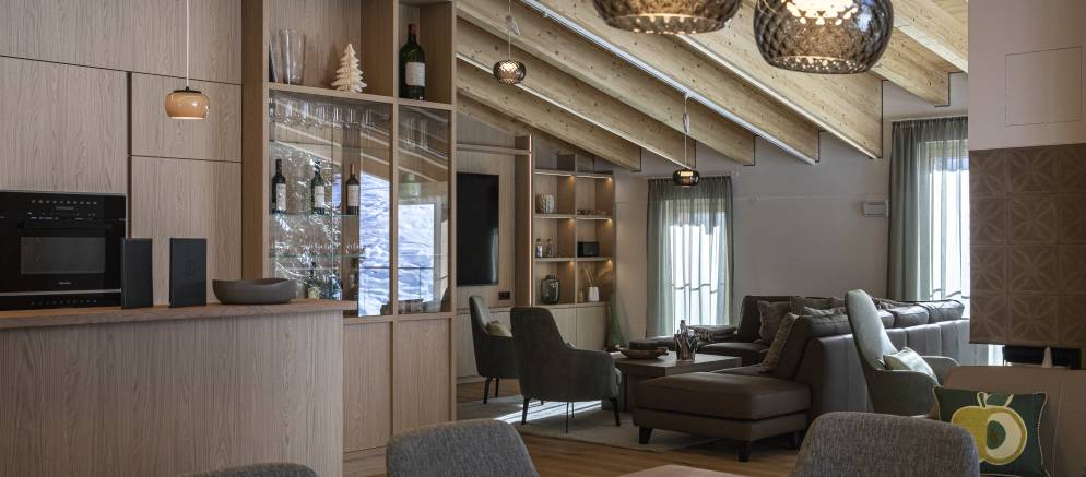 Chalet 47 is arranged over four floors all connected by an elevator and stairs. Sleeping up 20-24 guests there are 12 en-suite bedrooms, all of which can be arranged with either double or twin bedrooms. The ground floor features the open plan living rooms. Relax by the fireplace with a glass of chilled champagne or perhaps sit at the bar with a beer and recount the stories of your day on the mountain.