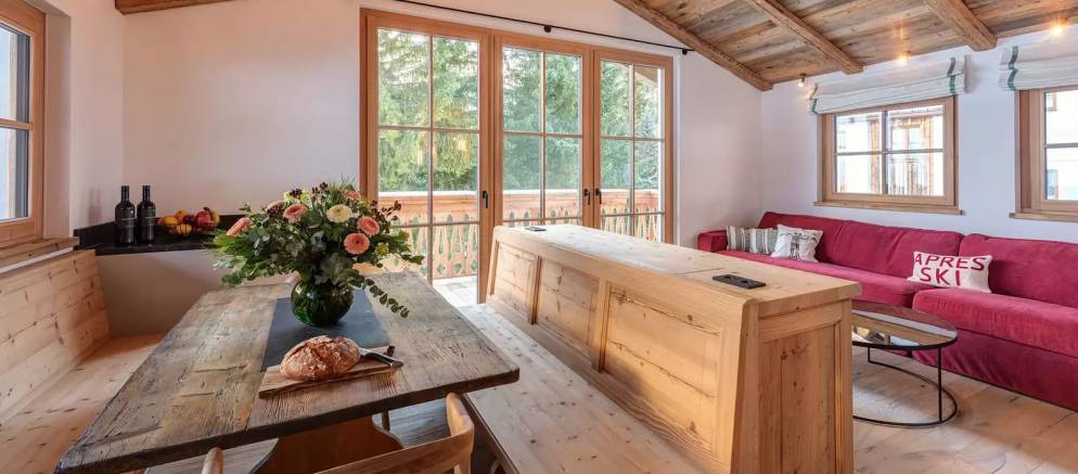 There is also a dedicated cinema room for those who just wish to relax with a Hollywood movie. The breakfast and dining room is a few steps down from the living room and resembles a traditional ‘stuberl’. Guests can enjoy their freshly prepared breakfasts and evening dinner parties expertly prepared by your dedicated chefs.