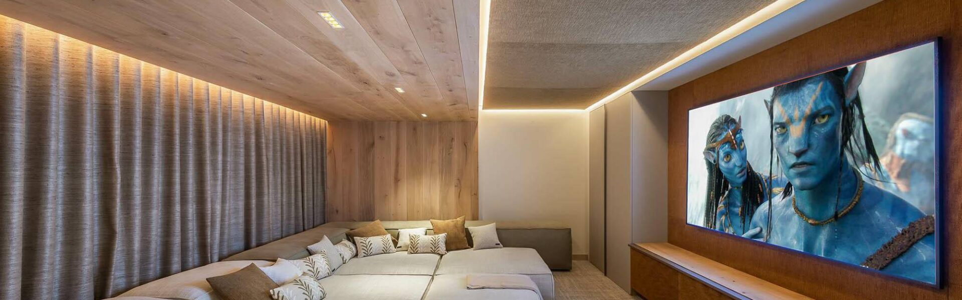 Also on this floor is the generously proportioned cinema room that offers sumptuous, cushy bed-style seating for a lavish movie-watching experience.