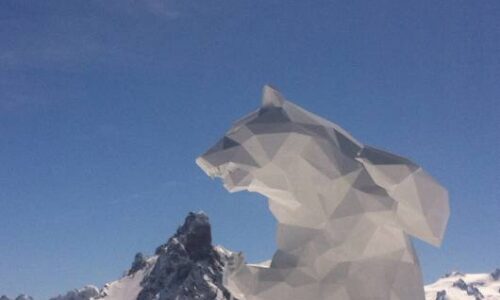 To those wondering, like me, how this magnificent beast came to rest within a stunning panorama, we have the French artist Richard Orlinski to thank. Each year the ski resort Courchevel organises the ‘L’art au Sommet’ where an internationally renown artist is invited to mix the mountains with their art. This certainly creates some stunning picture opportunities.