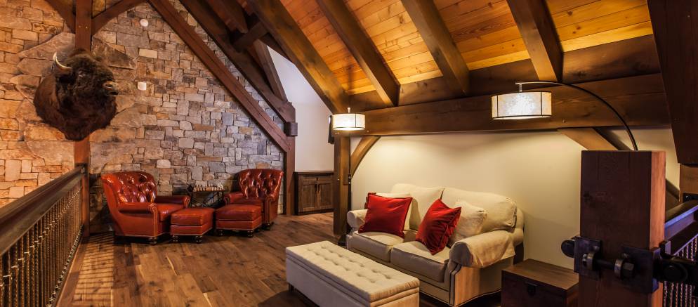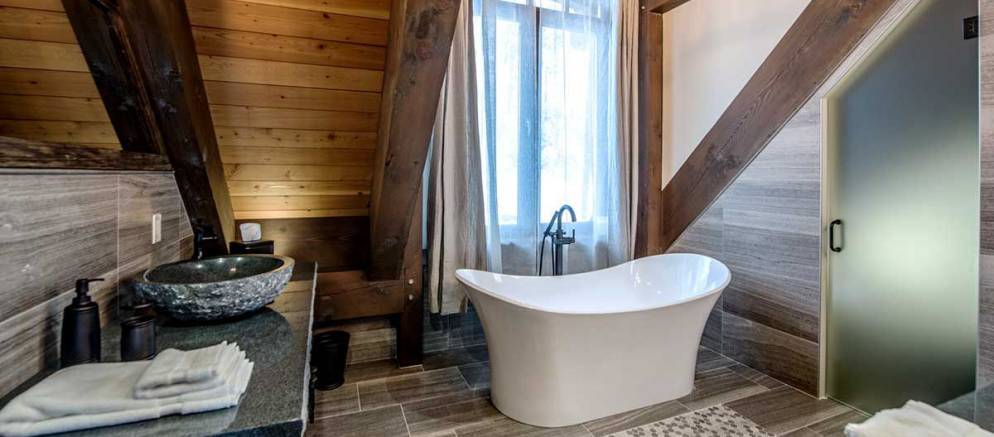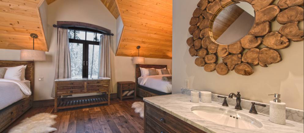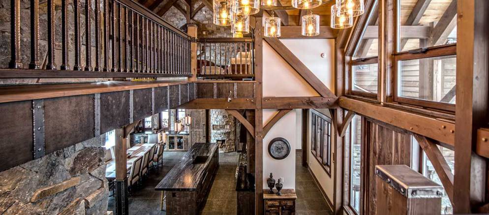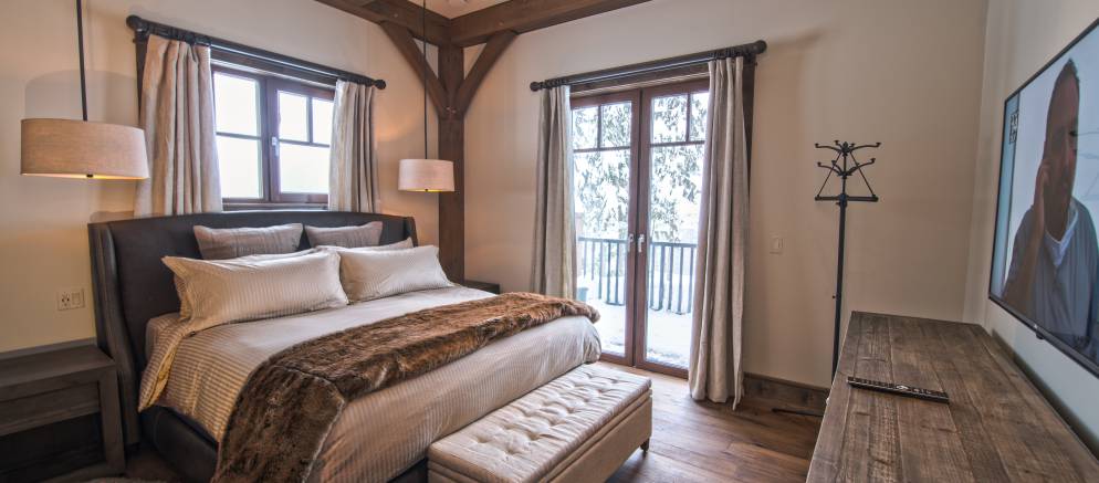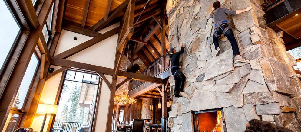 The lodge’s timber frame architecture embraces 6,800 square feet of luxurious living and extensive spa and entertainment facilities. Here you can just put your feet up, sink into plush sofas, and simply enjoy the warmth of the wood fire and take in the stunning views over the valley and mountains. Or why not enjoy one of the most unique ski chalet facilities found anywhere with a 28-foot natural rock climbing wall, complete with auto-belay stations and harnesses!