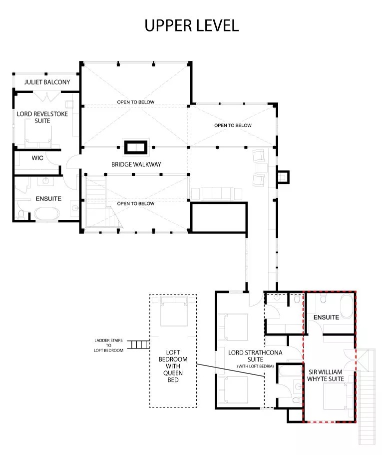Flexi room with 3 queen beds (1 loft) 2 bathrooms with 3 showers and an exterior vanity.