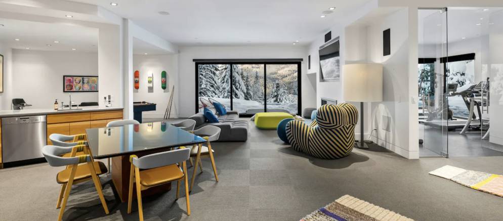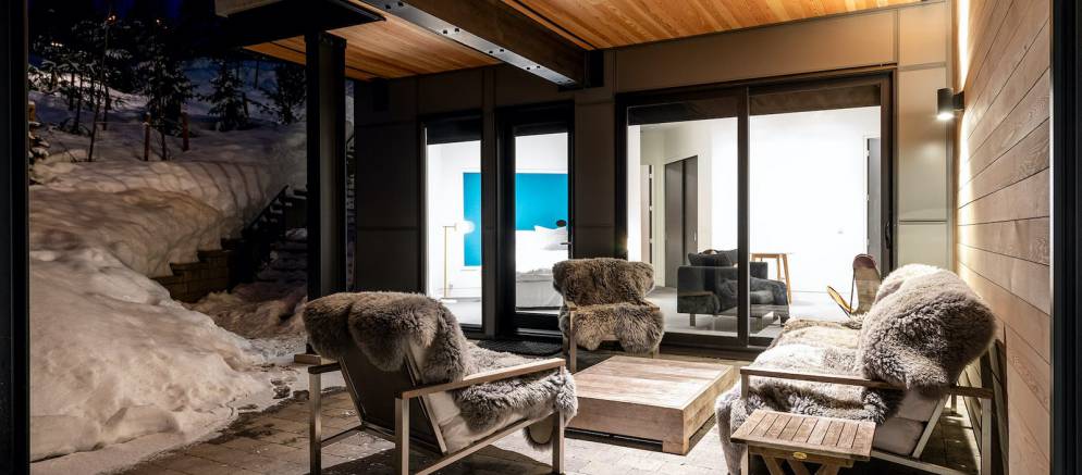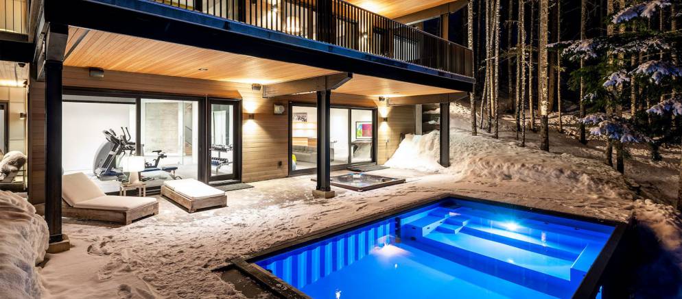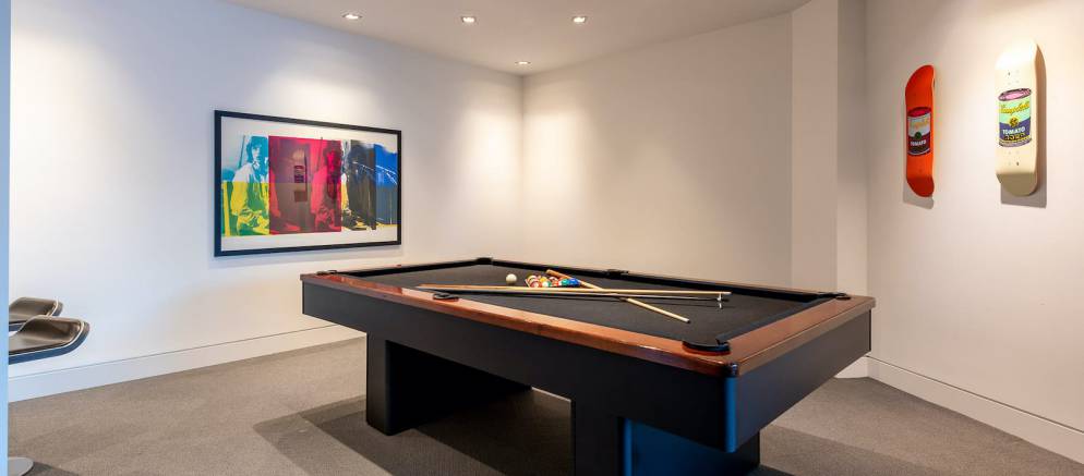 Finally, on the fourth and lowest floor there are plentiful spa and entertainment features which include your very own private gym, pool table, ping pong, and a full bar. There is also one more bedroom plus a massage room with daybed for extra sleeping capacity if needed. Outside you can enjoy the fantastic avant-garde container swimming pool and sunken hot tub with wooded views of the valley below.