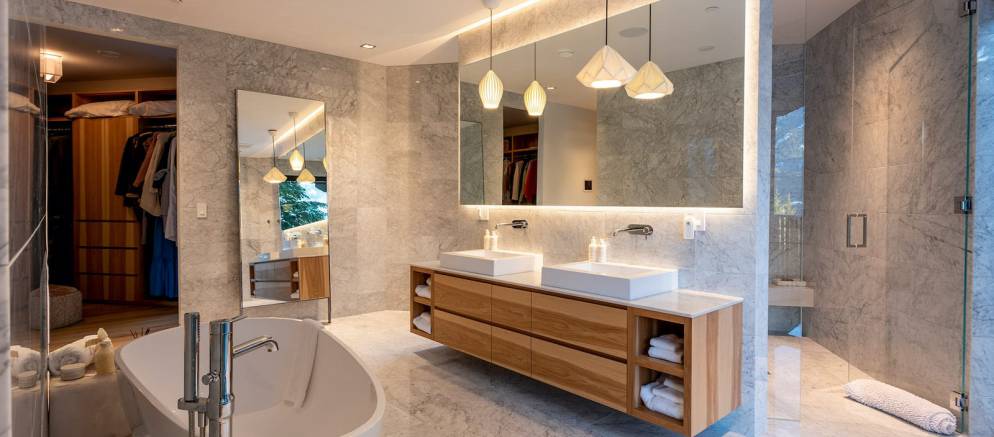 Down one further floor and there are four en-suite bedrooms, two of which are master suites and one has its own private office. All these rooms enjoy deck access and excellent mountain views.