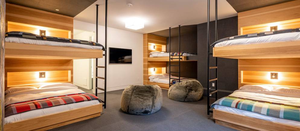 Taking the stairs down one floor and you arrive into a quaint study and play area. Pass through this room and you enter into what must be a children’s dream room with three oversized queen-over-queen bunk beds, TV, bean bag chairs and ample room for playing.