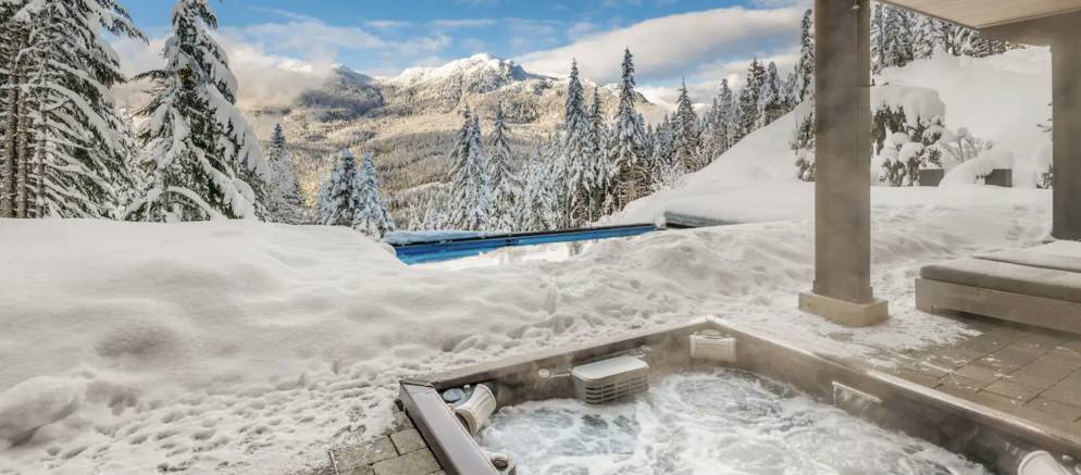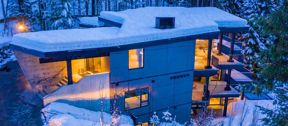Chalet Solitude Estate is located in the renowned neighbourhood of Kadenwood, where Whistler’s most exclusive luxury chalets are to be found. This area, tucked away in the trees above the valley floor, provides ski in ski out and private gondola access to the mountain and resort. Here privacy is ensured nearly 1,000 feet above the Creekside village yet only four minutes away by the private Kadenwood gondola.