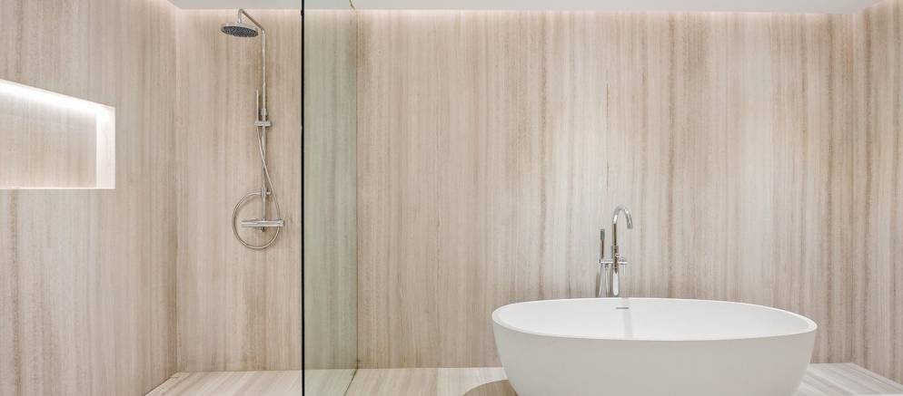 King bed, mountain views, ensuite bathroom featuring a deep soak bathtub and shower.