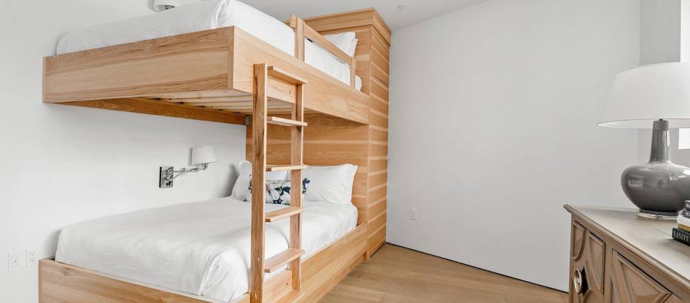 One Queen-over-queen bunks, mountain views, shared Jack and Jill bath with bedroom 5.