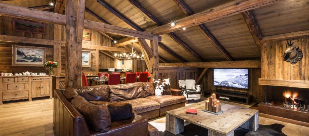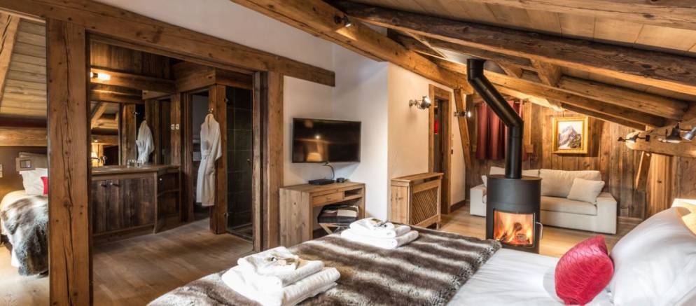 Also on the first floor are the living areas with a relaxing space to watch television or sit back with a good book by the open fireplace. The decorative balcony extends from the living area to give that further sense of space and provides a wonderful spot to take in the breath taking views of the Chamonix valley.
