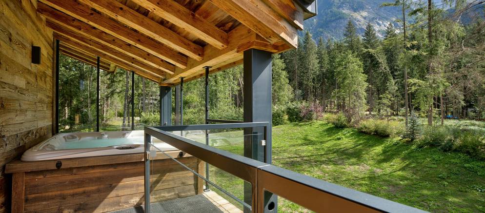 Outside in the private garden you can play in the snow and build snowmen in the winter, or simply relax in the sunshine in the spring, summer and autumn. There is also an outdoor hot tub on the first-floor terrace which sits under the roof eaves so can be enjoyed throughout the year.