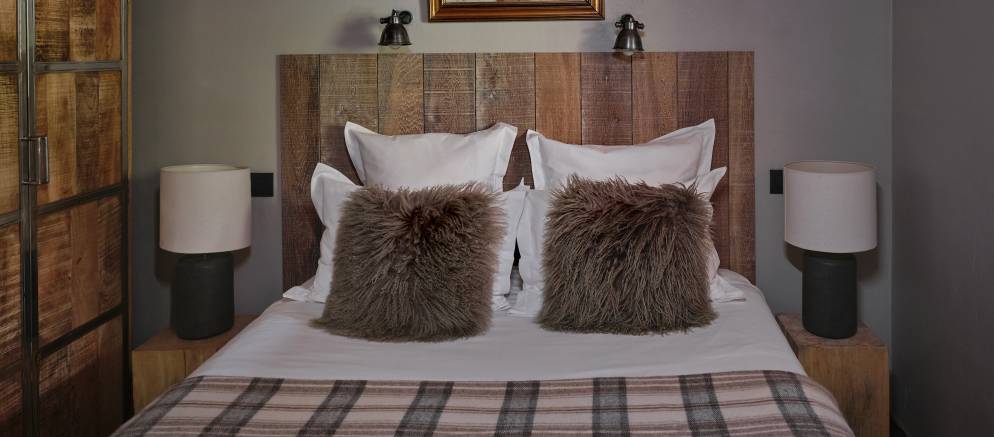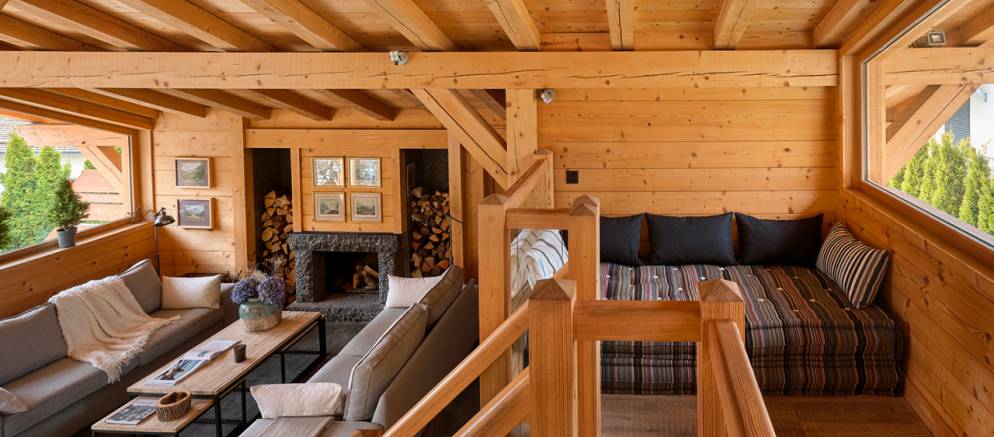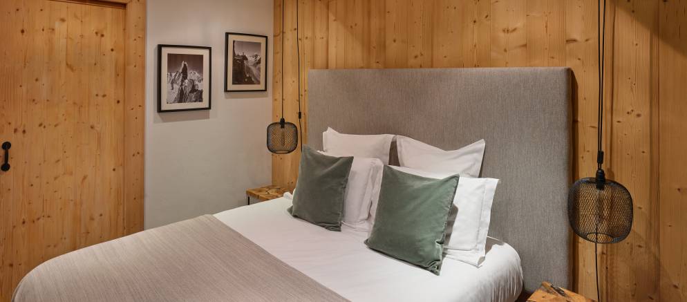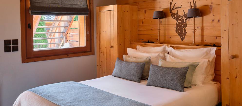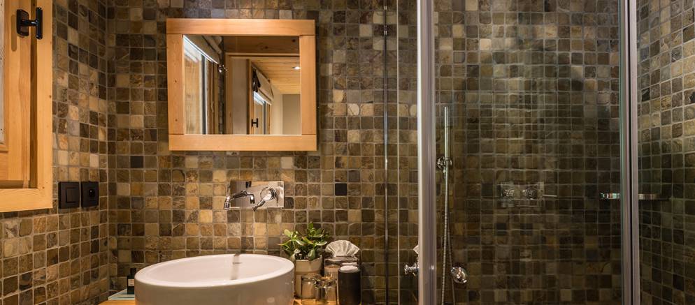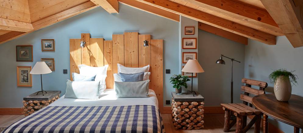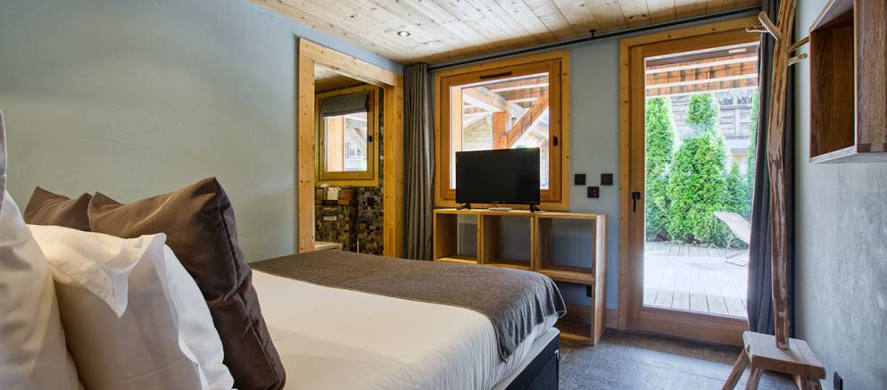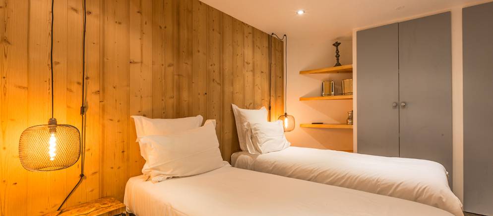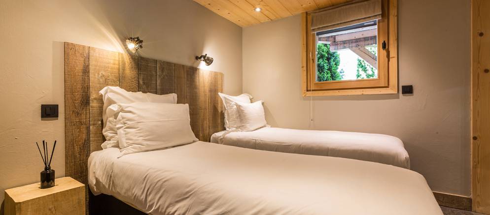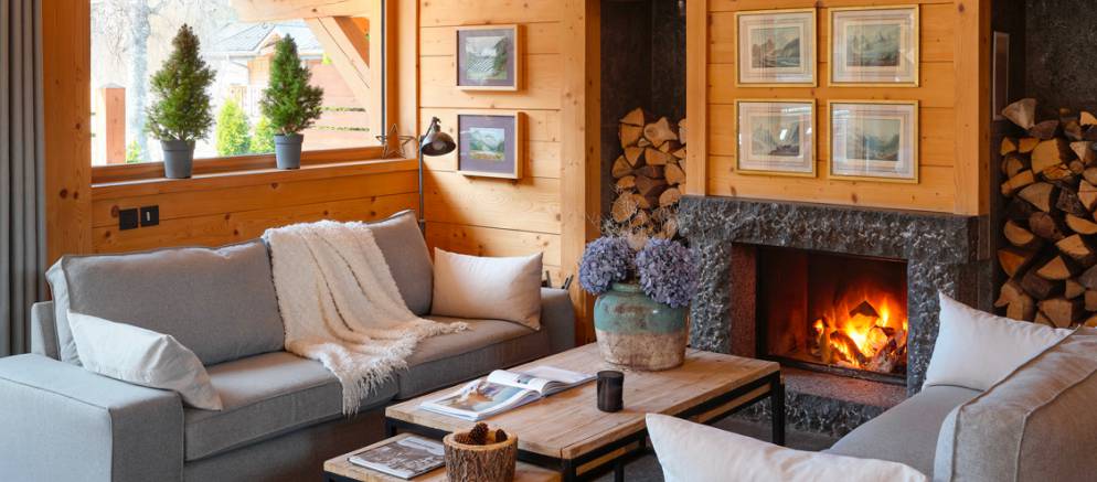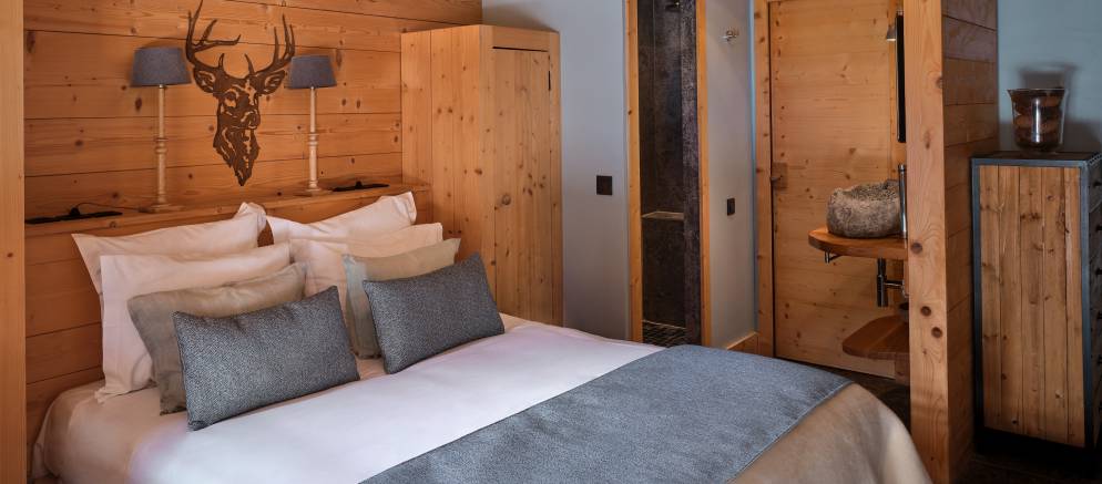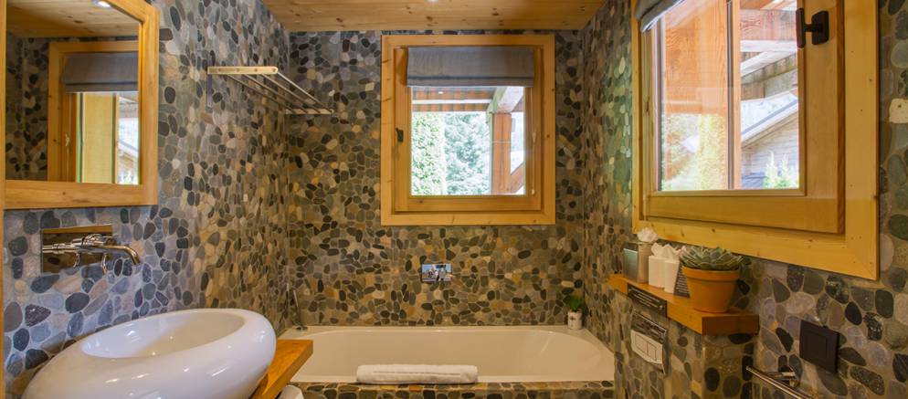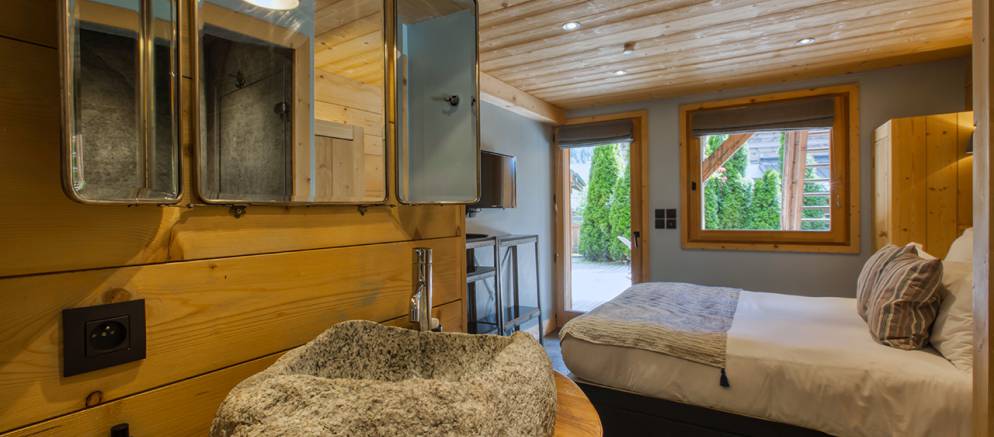 Positioned nearest the river on the banks of the Arve, the chalet is a blend of raw and natural materials combined with calming “glacier” colours, to create a relaxing and peaceful atmosphere. Sleeping 12 people across 6 bedrooms, it also features a large living room with real log fireplace, TV, WiFi and a mezzanine with comfy sofas.