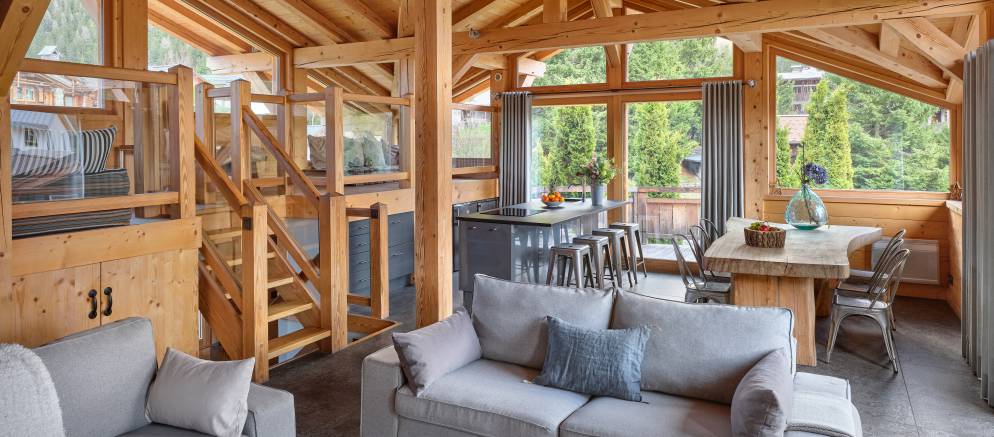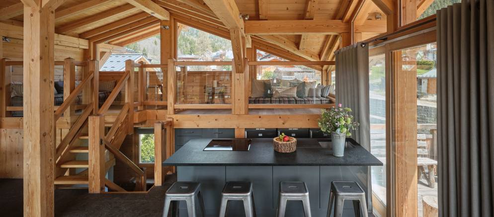 Chalet Granit is the perfect choice for its harmony with nature, a haven for your ski holiday alongside the River Arve. The large living room is flooded with natural light as well as panoramic views from both inside and outside on the large terrace facing the Grands Montets, just a short distance away.