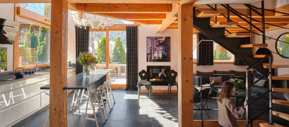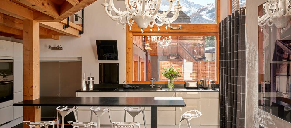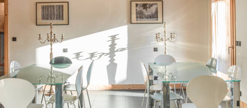 Chalet Quartz is part of Les Rives d’Argentière, a combination of four luxury chalets nestled in the heart of the village of Argentière in the Chamonix valley. Chalet Quartz is created via the combination of two of these luxury ski chalets, Granit and Cristal. The large dining room interconnects the two chalets, so everyone can eat together making it ideal for friends, families and corporate clients.