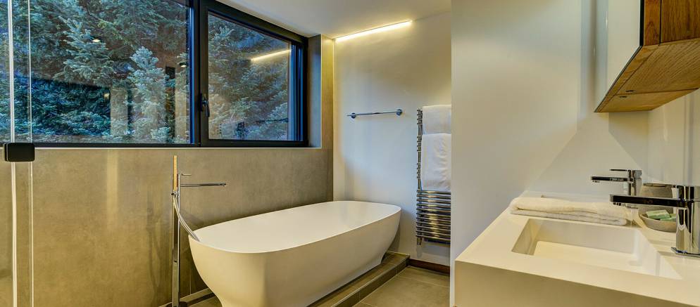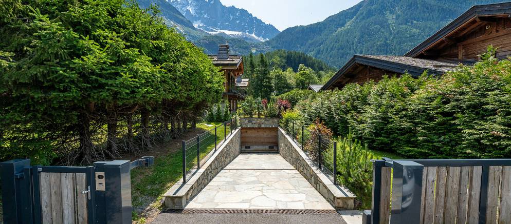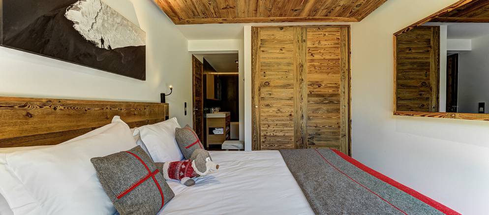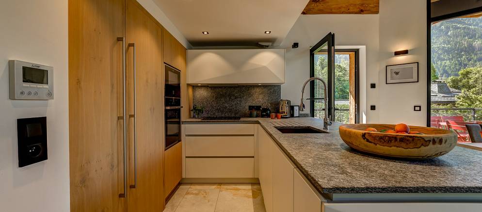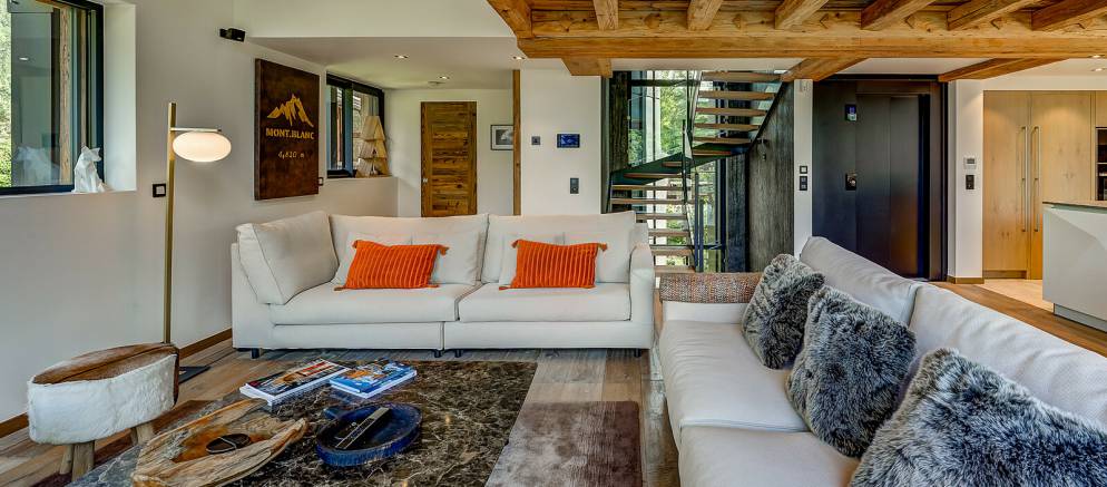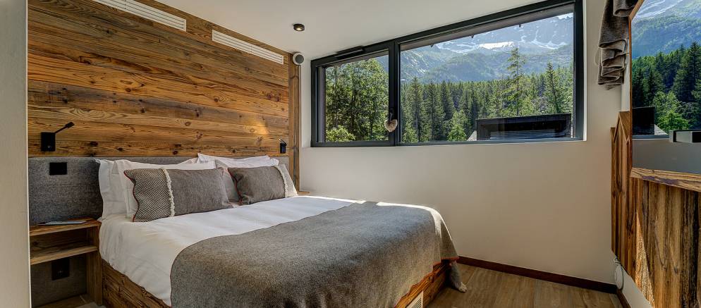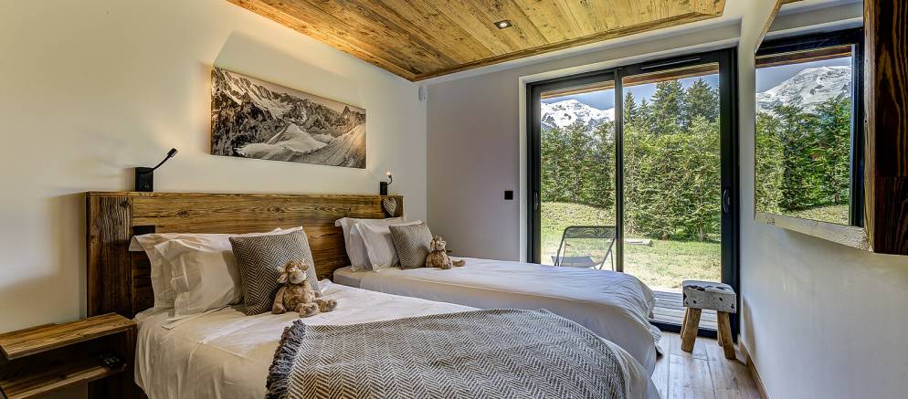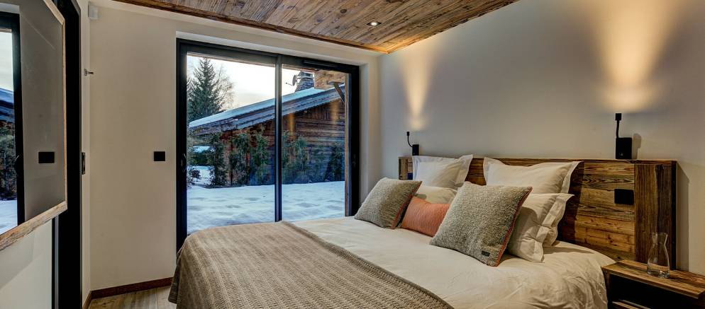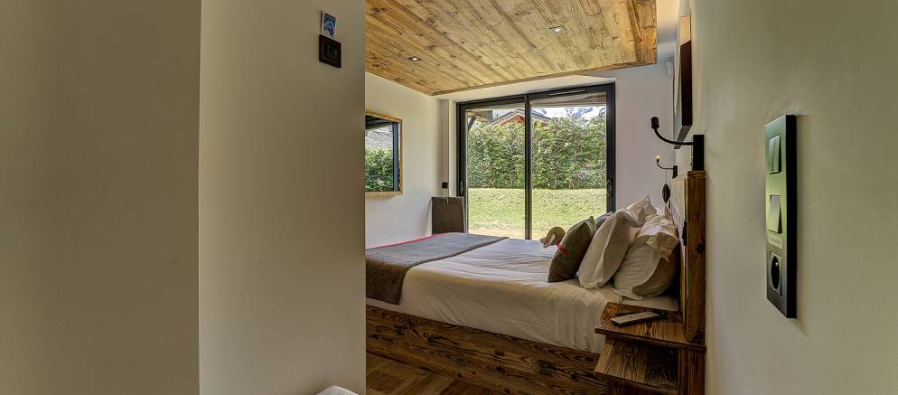 The chalet is spread over four floors and 260m2 of floor area. The open plan living rooms are arranged across the first floor where floor-to-ceiling windows frame the panoramic Mont Blanc views. On snowy winter nights you can curl up on the sofa next to the wood burner, or in the summer step out onto the wrap-around terrace and enjoy a barbecue with a mountain backdrop.