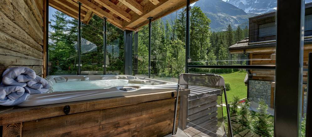 Outside in the private garden you can play in the snow and build snowmen in the winter, or simply relax in the sunshine in the spring and summer. There is also an outdoor hot tub on the first-floor terrace which sits under the roof eaves so can be enjoyed whatever the weather.