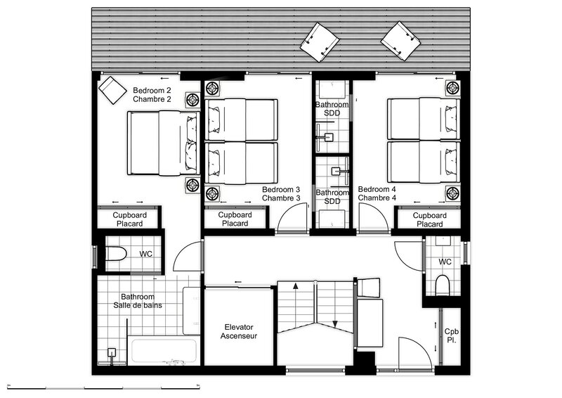 For larger groups, Chalet Red Fox can be rented in conjunction with neighbouring Chalet Black Pearl, to accommodate groups of up to 24 guests in 10 bedrooms. These 2 chalets share a common garage in the basement.