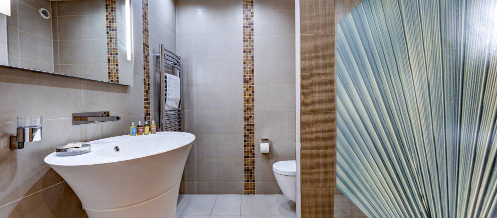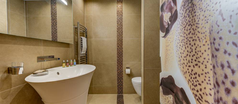Double or twin bedroom with private balcony, in-room bath, and en-suite shower room.