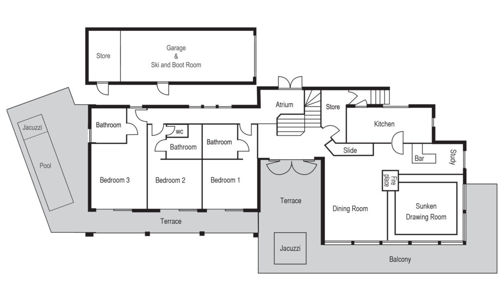 All the bedrooms are south facing and lead out onto either the terrace or a balcony. Children staying here will be delighted to find something just for them…an indoor slide!