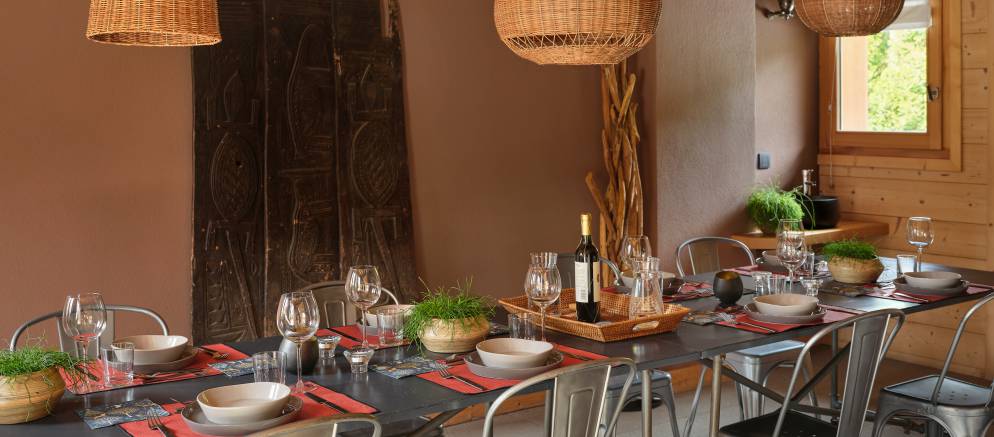 Les Rives d’Argentière with its unparalleled calming location, offers exceptional views of the ski slope of Les Grands Montets, Argentière Glacier, Aiguille Verte and of course Mont Blanc. Chalet Terre, meaning ‘earth’ in French, is decorated in warm and earthy colours to create an authentic African atmosphere. The décor and original ethnic artwork help to create an original feeling ski chalet, full of surprises.