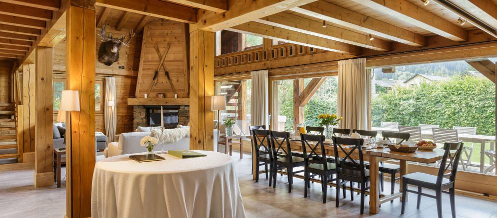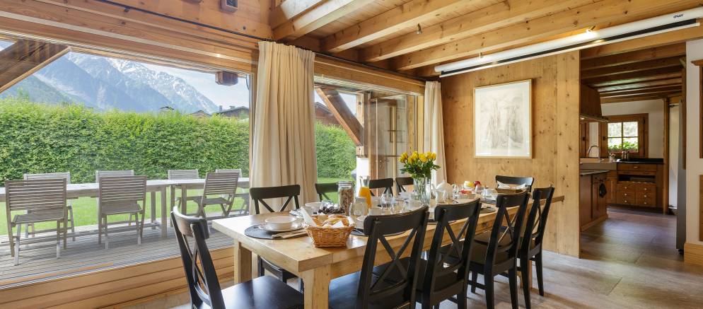 Chalet Valhalla was built with beautiful natural timbers and is a structure of grand proportions right in the heart of Chamonix. It is open and light with floor to ceiling windows giving you Titanic views of Mont Blanc.