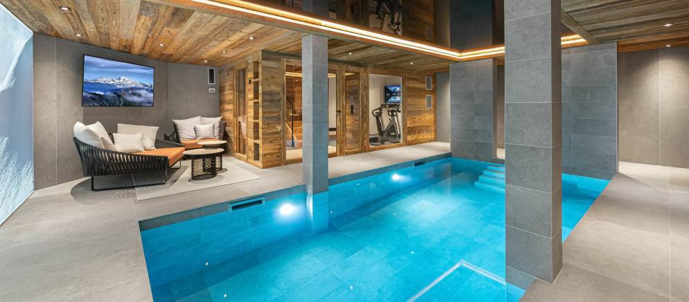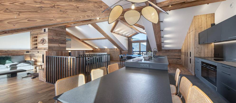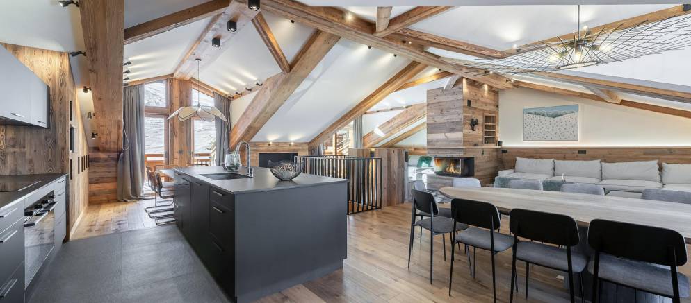 Sleeping up to 10 adults and 3 children, there are six bedrooms and five bathrooms. The rooming gives plenty of flexibility for several families to holiday together. There is also a laundry room with washing machine and tumble dryer, a fully equipped ski room lets you store your gear securely for your next day’s adventure, and two private parking spaces are available for those driving to resort.