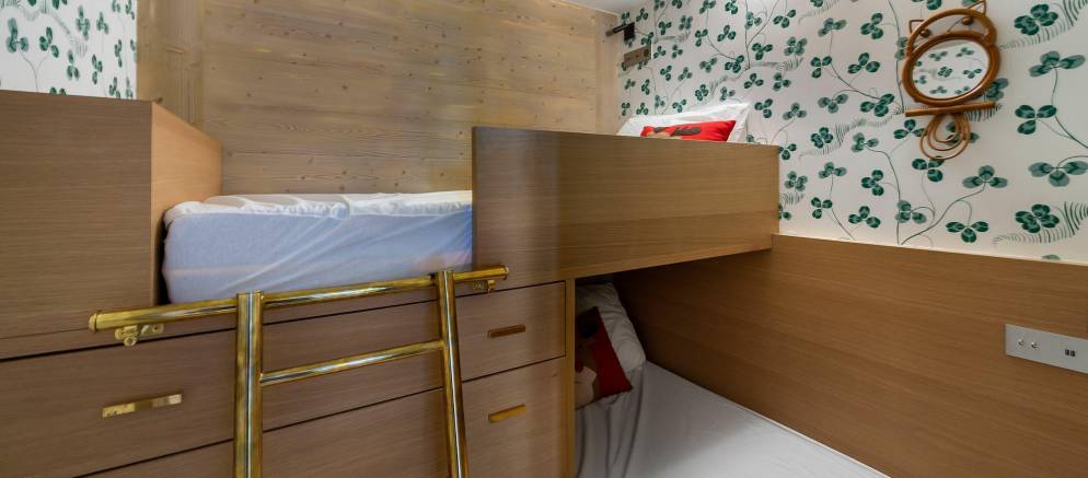 Family room with double or twin bed and bunk room, balcony and en-suite bathroom. Sleeps 2-4.