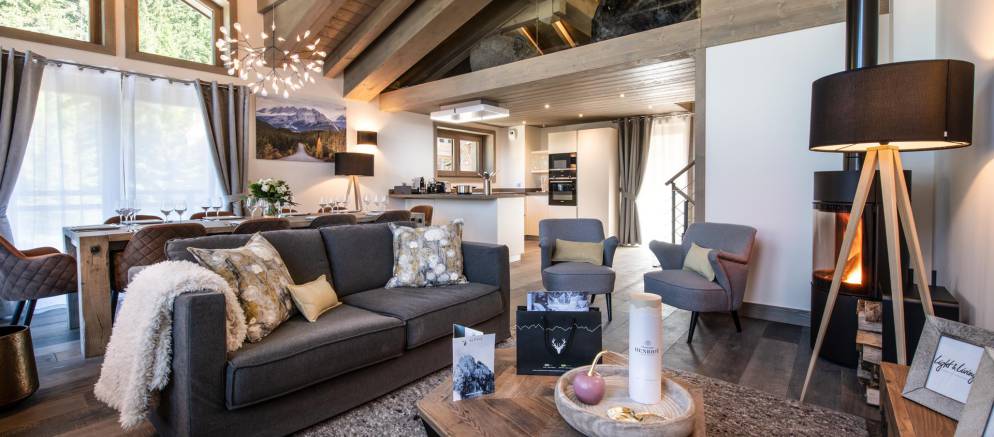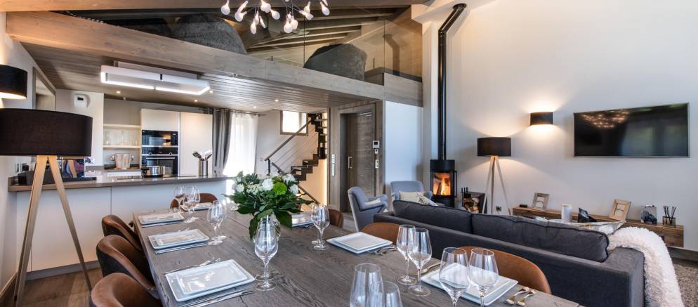 The chalet is arranged over four floors all connected by stairs and an elevator as well as a mezzanine floor above the living room. Sleeping up to 8 adults and 2 children in 5 en-suite bedrooms, the chalet offers 167m2 of living space.