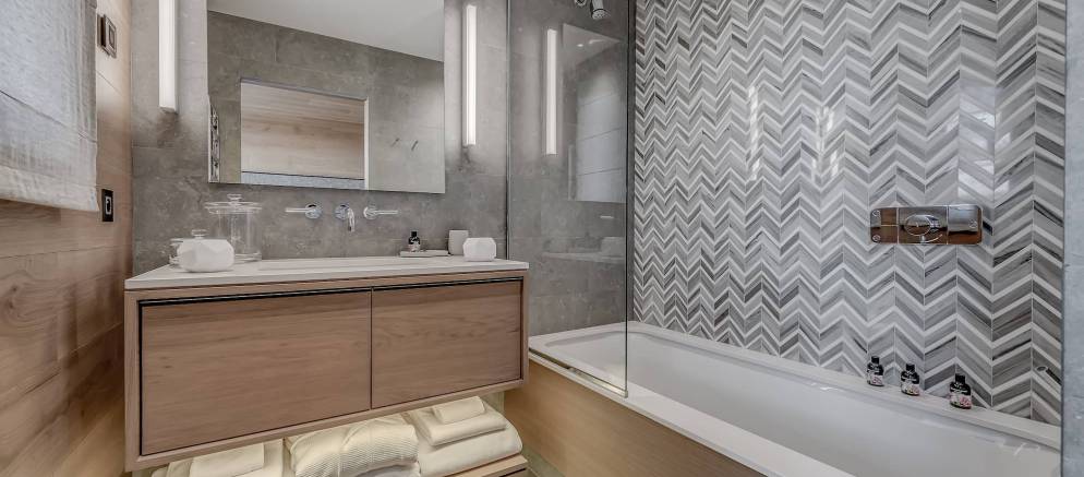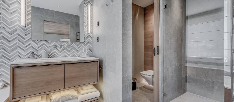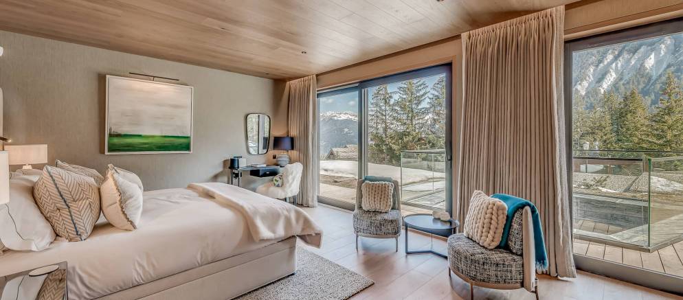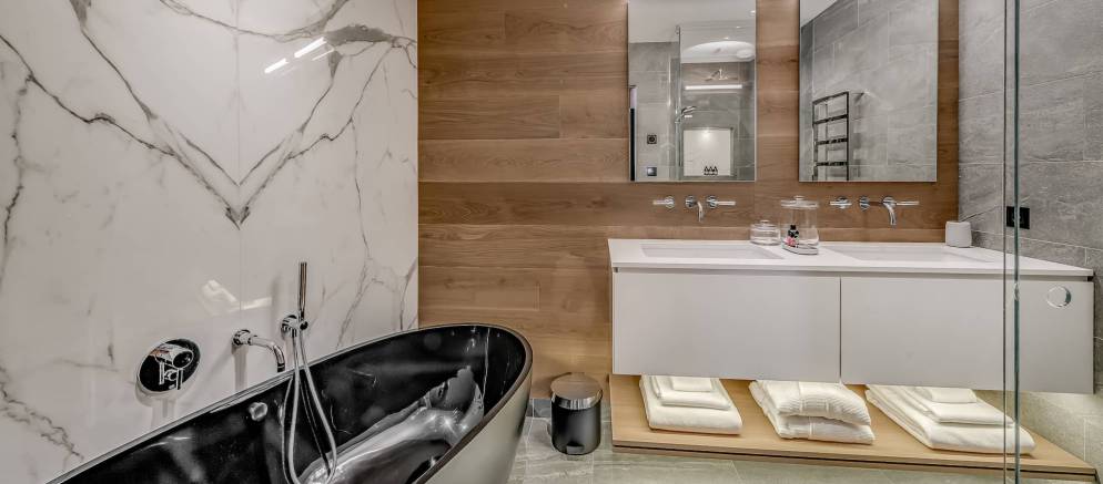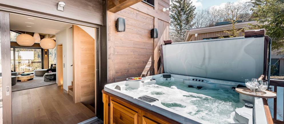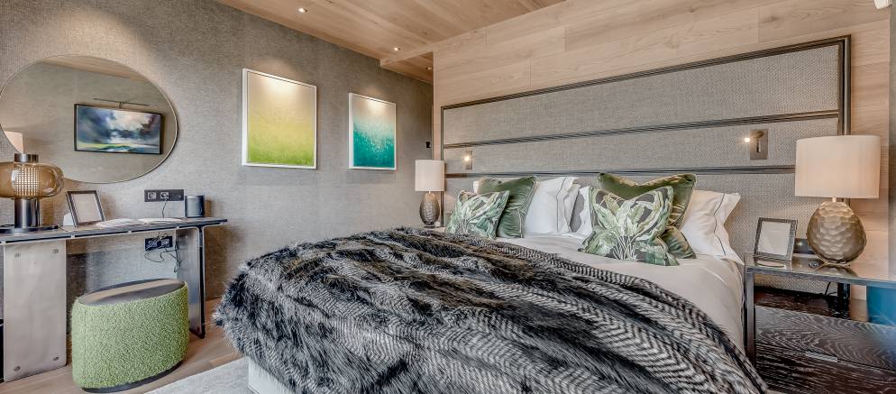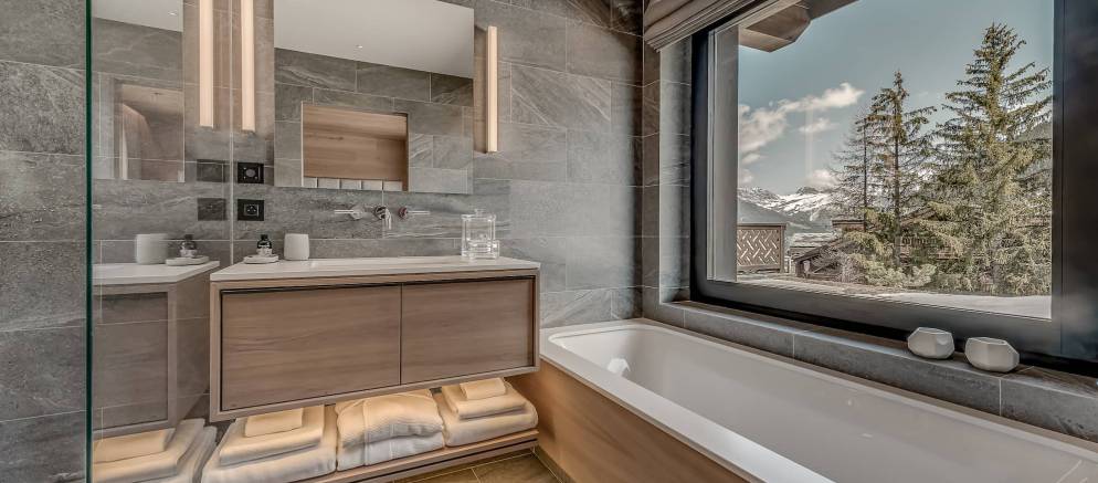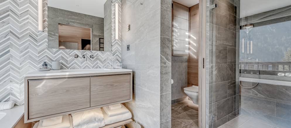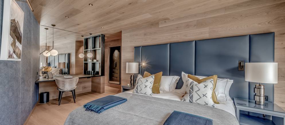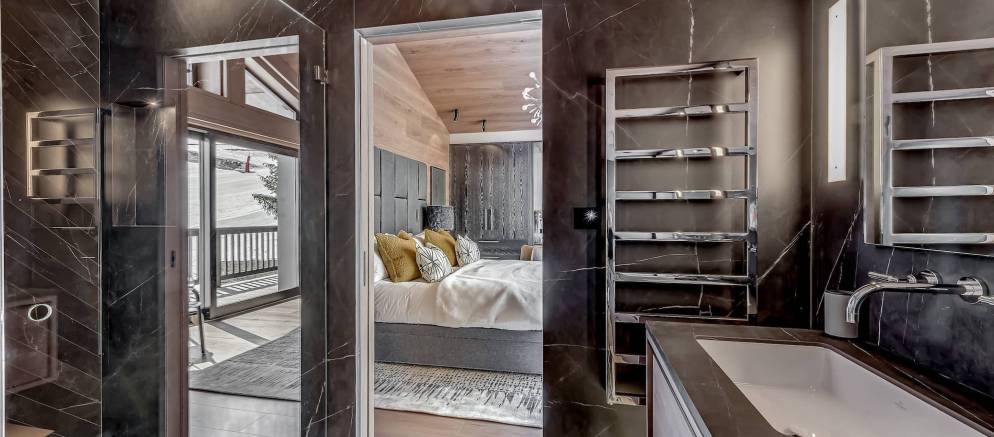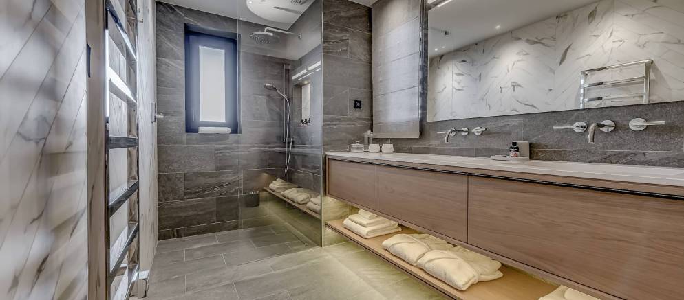Heading down to the lowest floor of the chalet and this is the place to enjoy some serious relaxation and entertainment. Enjoy a dip or rack up some lengths in the 10-metre indoor swimming pool or unwind in the adjacent sunken jacuzzi. Warm up in the sauna and hammam, whilst floor-to-ceiling glass-doors lead to an exterior private heated courtyard. Down the hallway from the spa is the cinema with generous tiered sofas, whilst one floor up is a dedicated treatment room.