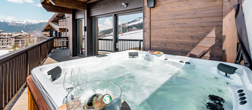 The luxury catered Chalet Bacchus, completed in January 2021, is located in an enviable setting on the Belvedere piste, just above the centre of Courchevel 1650 (Moriond). The direct ski in ski out access provides quick and easy access to the extensive slopes of the 3 Valleys ski area, and the children’s snow kindergarten is only a quick snowy slide away. The resort centre of this family friendly ski resort is only a short walk away, meaning all you could need is just outside of your chalet’s front door.