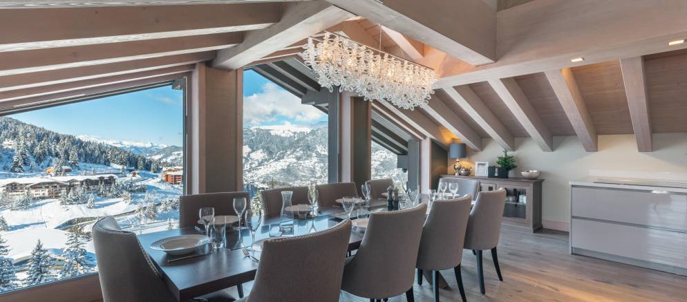 Chalet Cortina is a modern luxury ski chalet in Courchevel 1650 with exceptional views across the resort and valley. Located in a quiet setting, the escalator providing easy access into the resort centre is an easy and flat 120m walk away. The property is spacious and along with a very elegant interior is a sublime place to stay for a ski holiday in Courchevel and the 3 Valleys ski area.